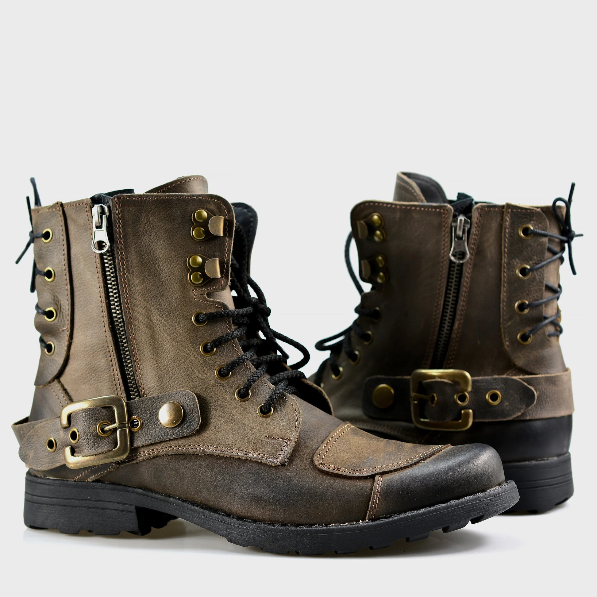 Motocyklové boty All Ride Chad – ručně šité hnědé boty z italské kůže | KarolShoes
