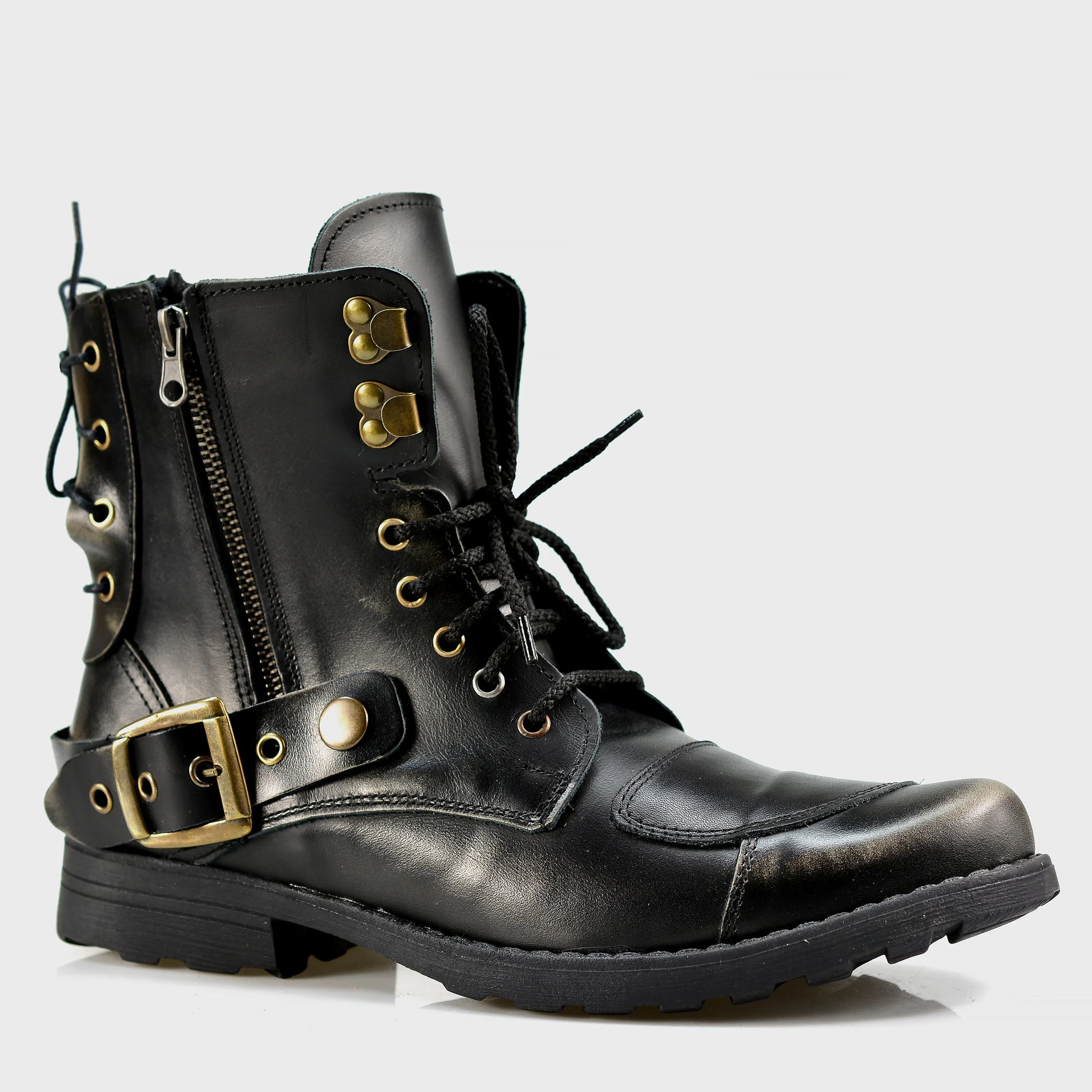 Handmade Black BS Leather Men’s Motorcycle Boots – Chad