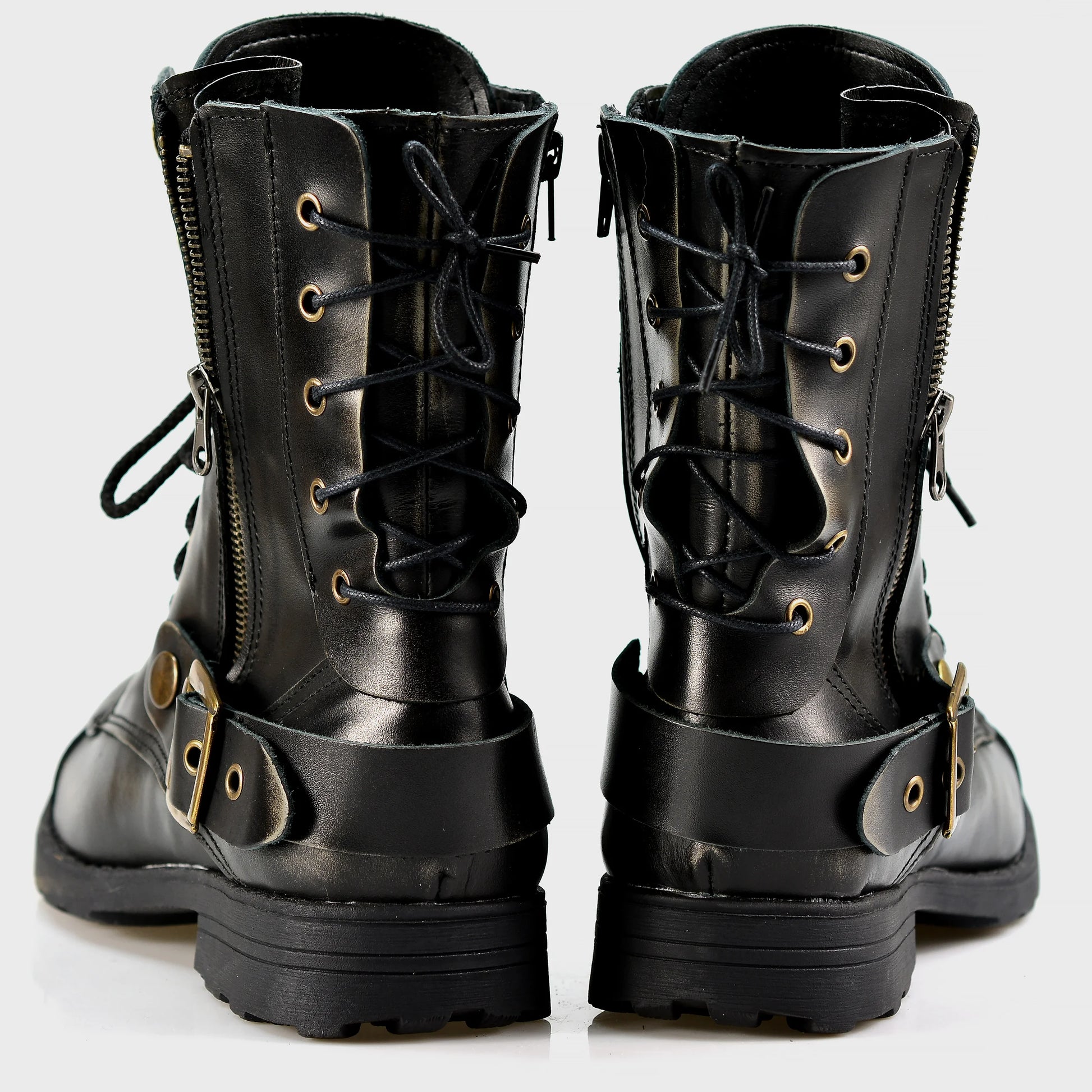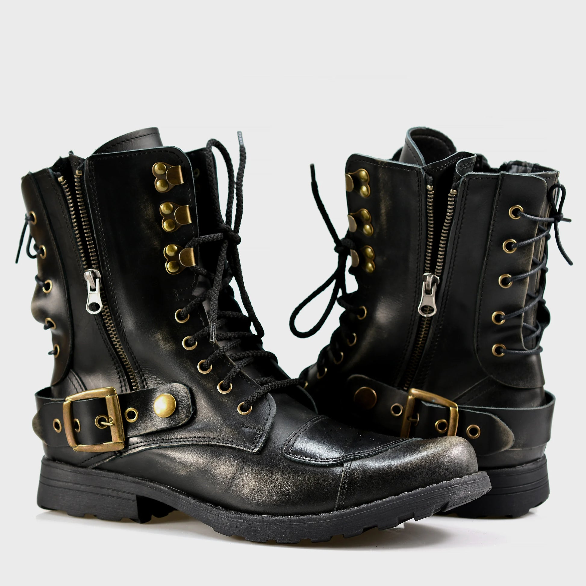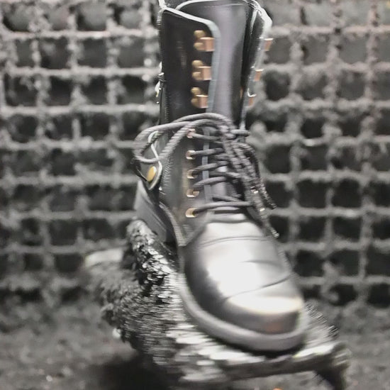Handmade Black BS Leather Men’s Motorcycle Boots – Sonny