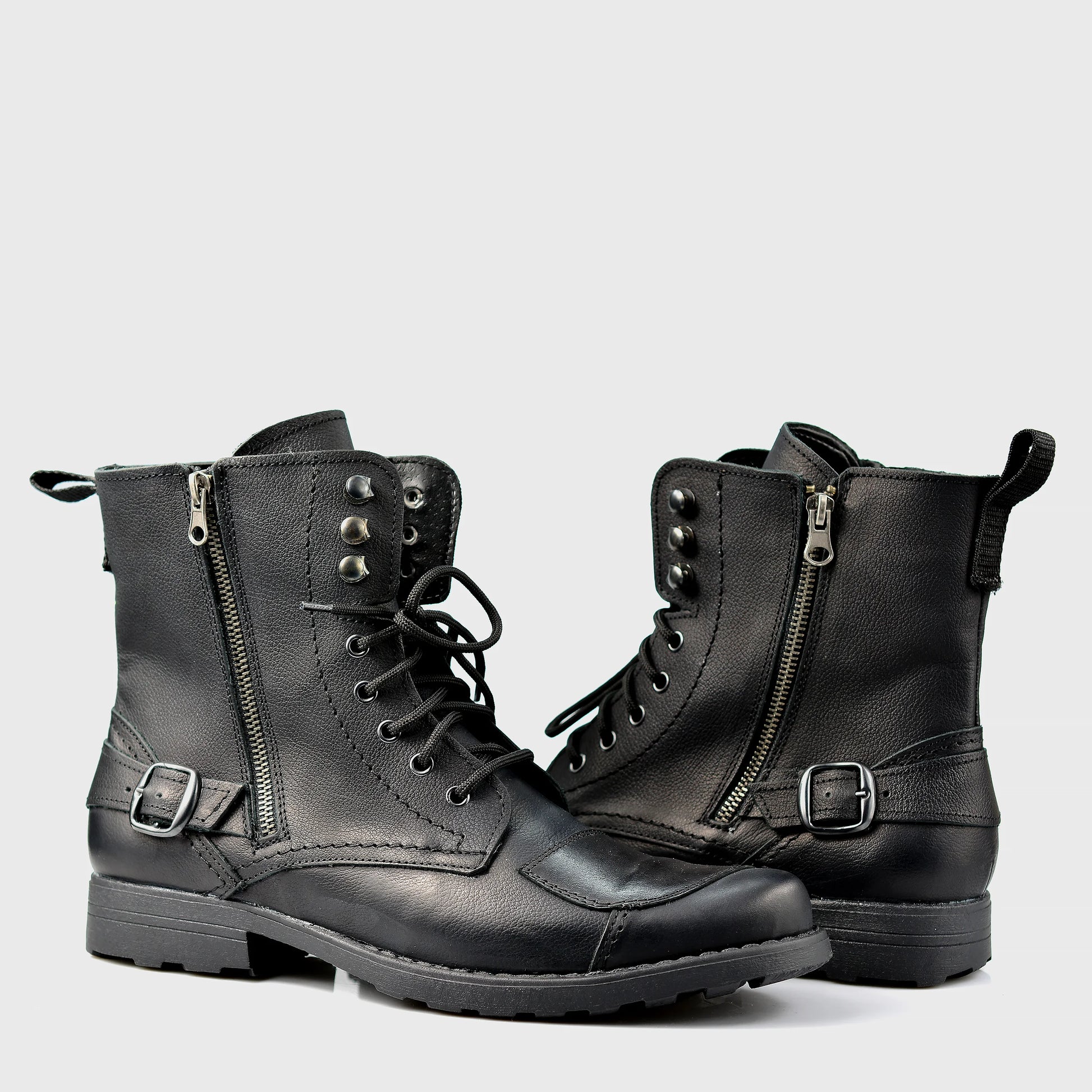 Handmade Black Leather Men’s Motorcycle Boots – Blake