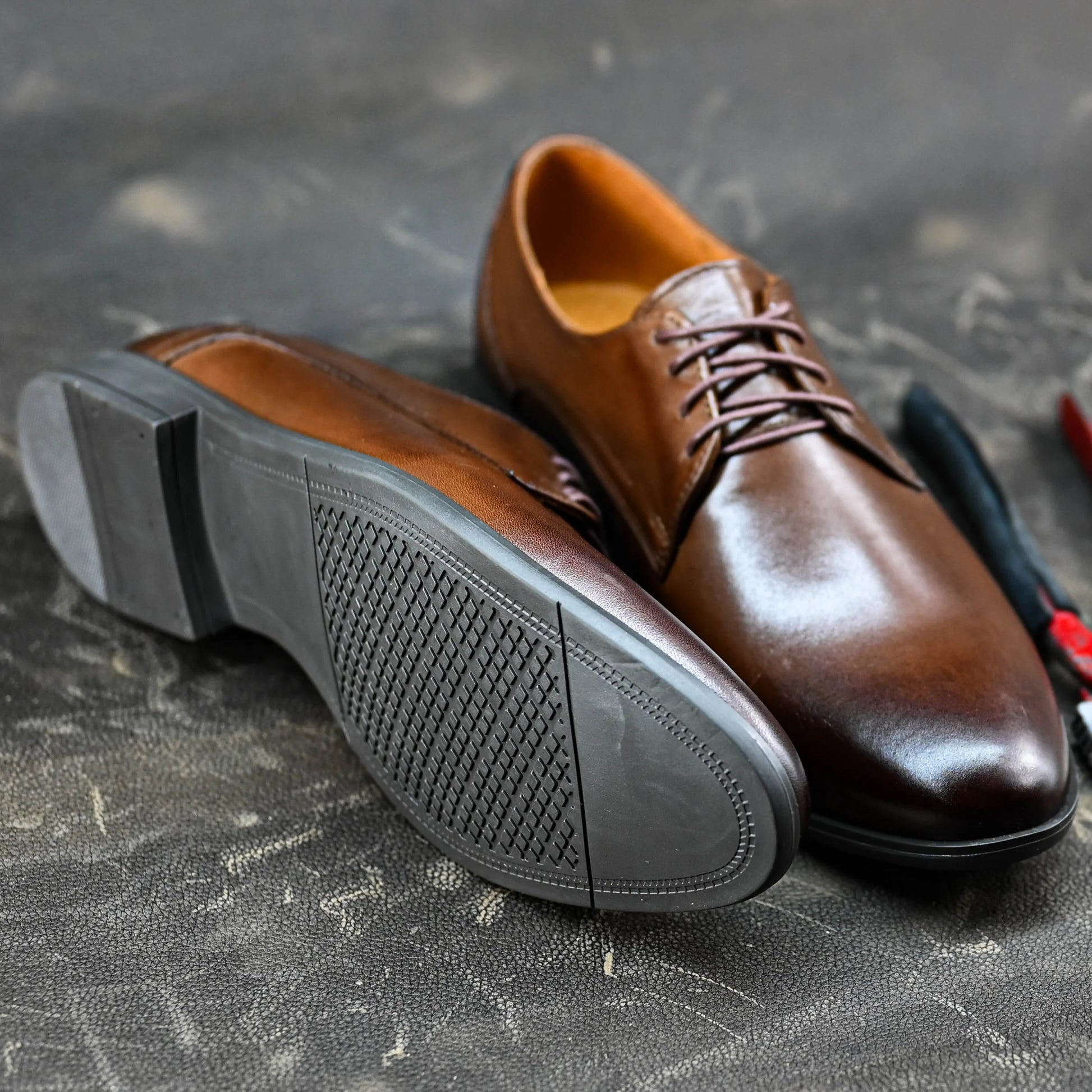 - Please try on shoes only on a soft surface (e.g., carpet) to avoid damaging the leather sole.