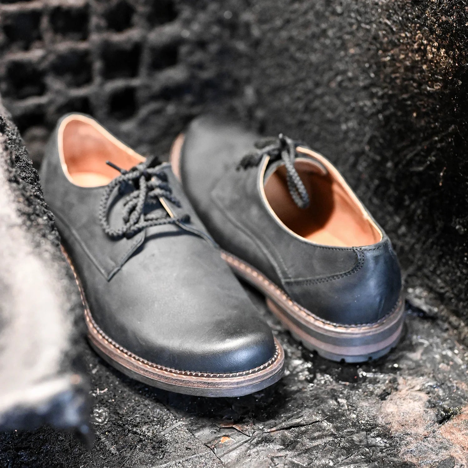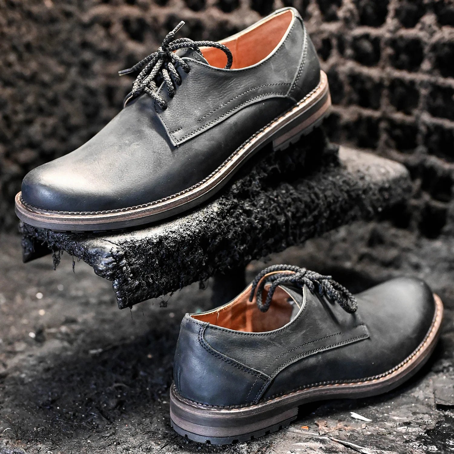 • Treaded rubber sole + leather layer — grip, longevity and refined contrast