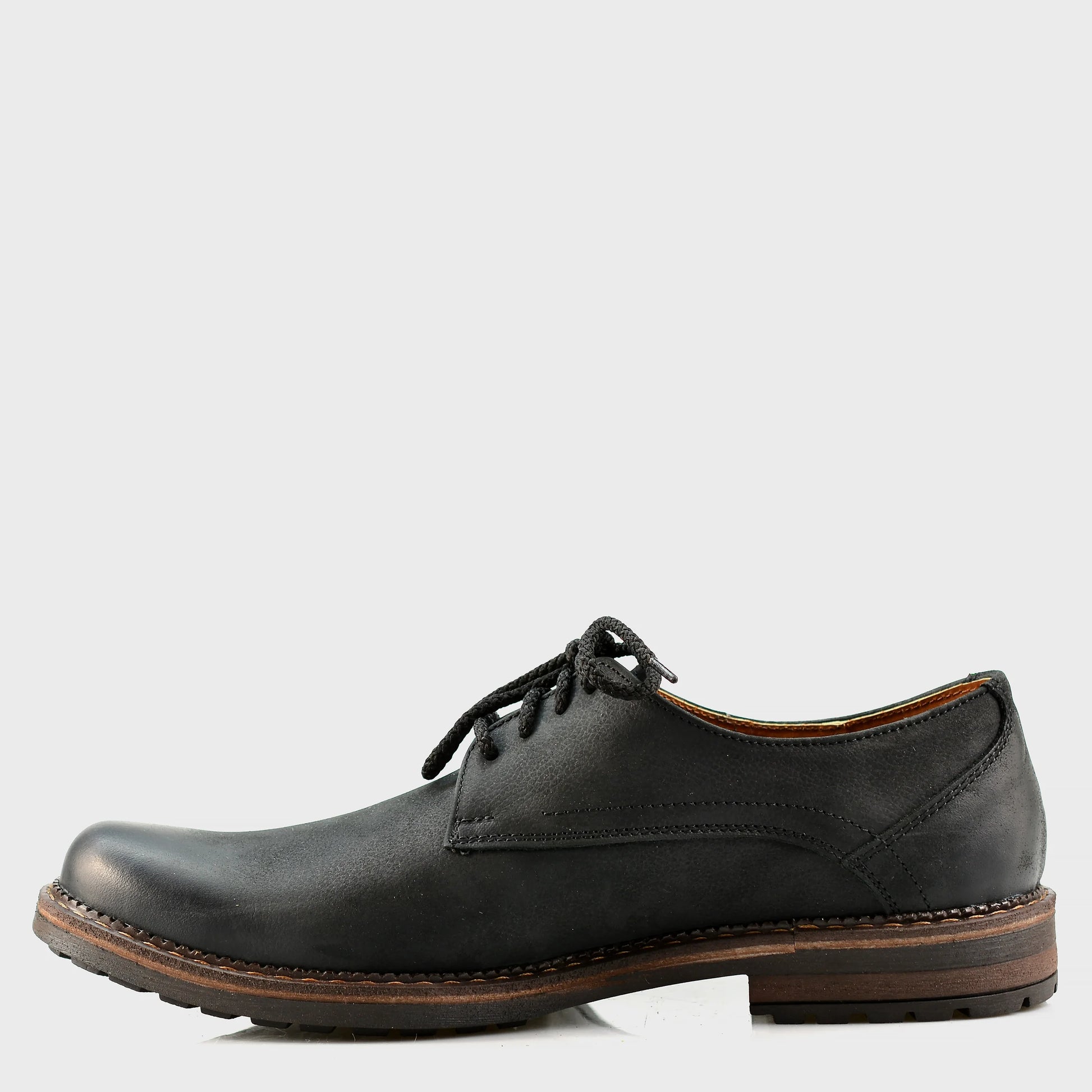 The Aldo are handmade men’s derby shoes built for men who value durability, comfort and a no-nonsense style. Crafted in Poland from thick, semi-matte full-grain black cowhide, they pair a clean, classic silhouette with a rugged artisanal finish designed to last for years.