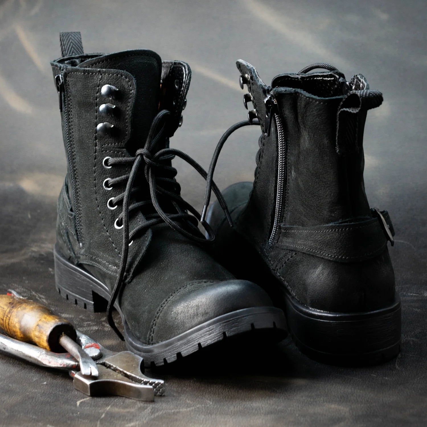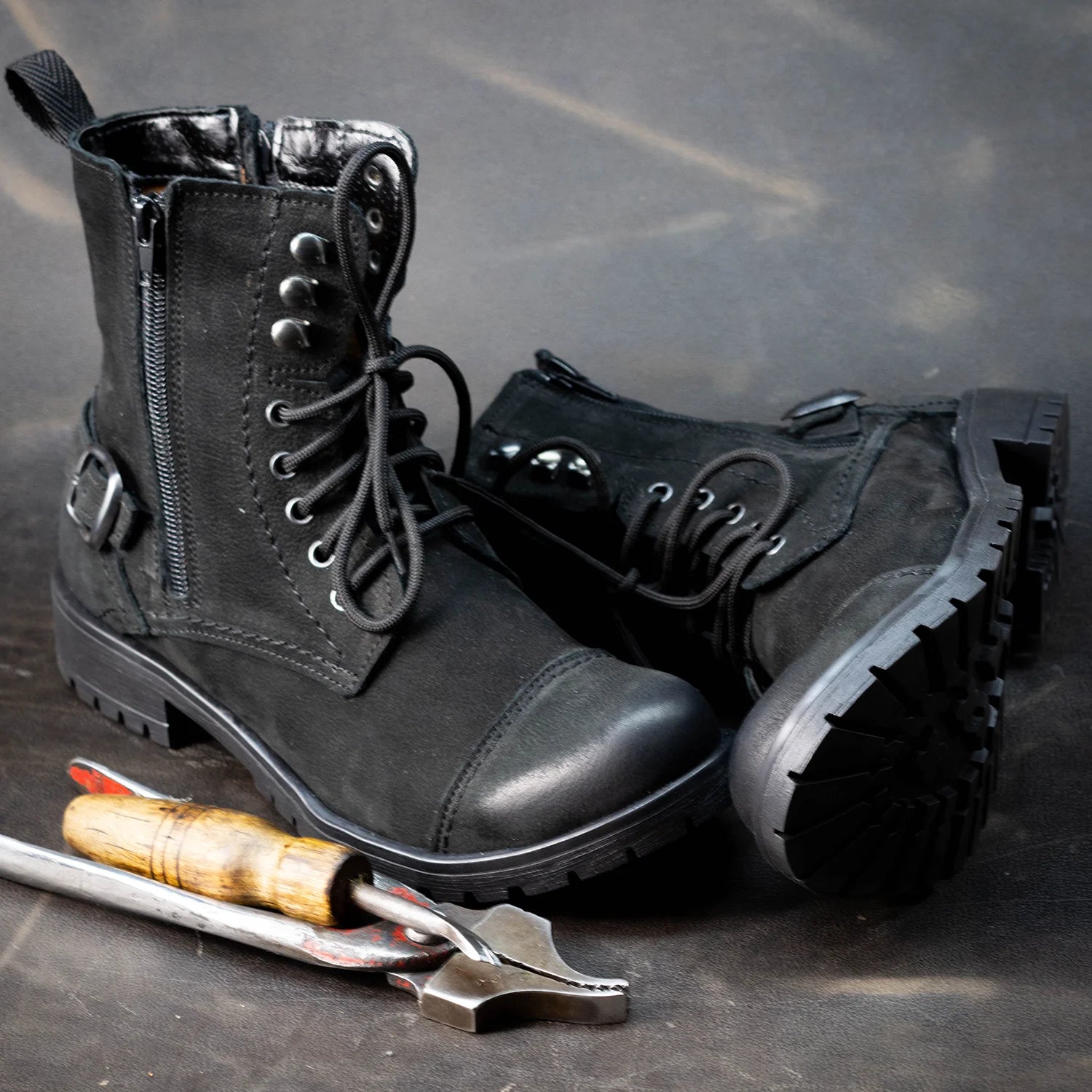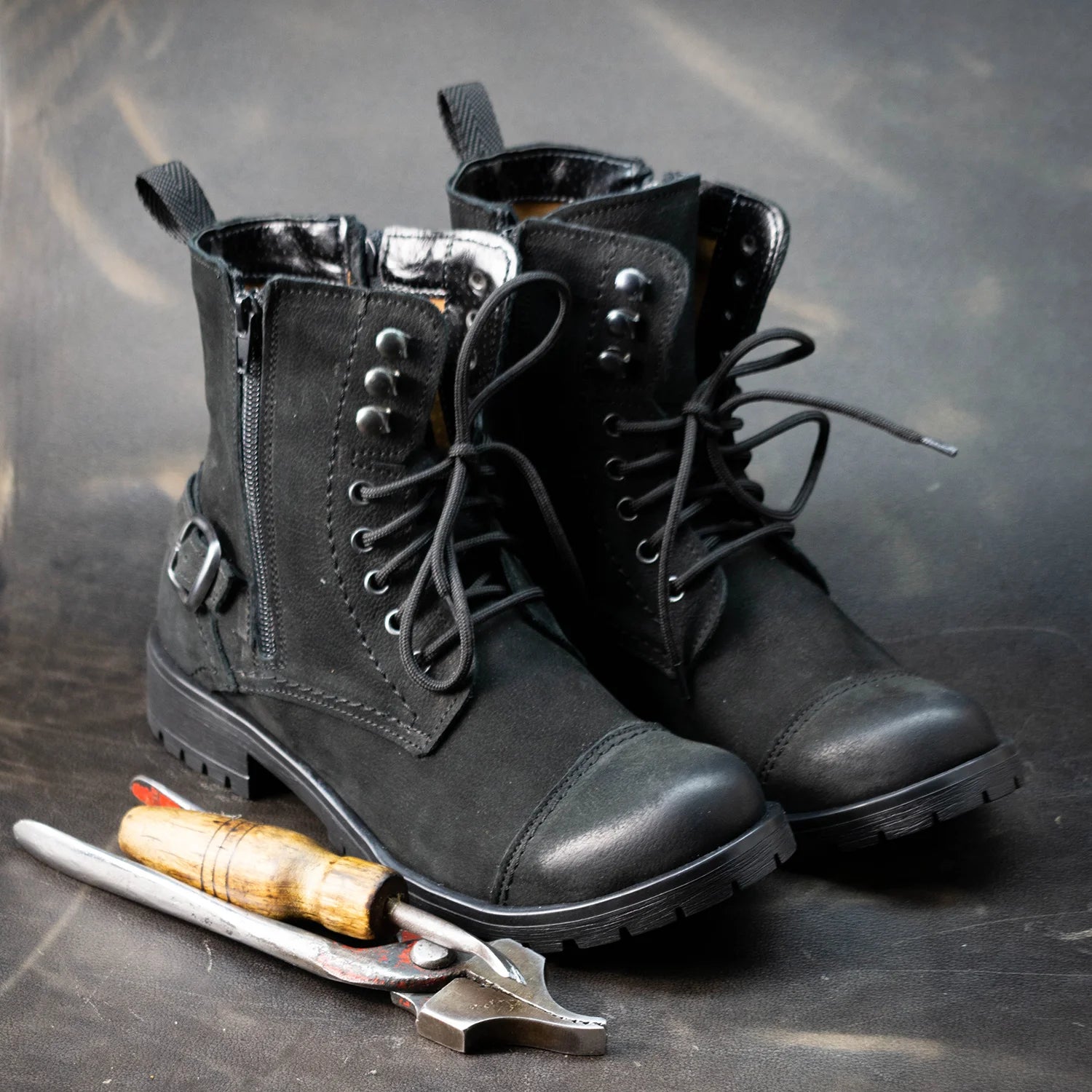 The Aria are handmade women’s biker boots crafted in Poland from high-quality full-grain black leather. With a slim, clean profile and a higher ankle, they blend timeless elegance with a subtle motorcycle edge — durable, comfortable and easy to style for autumn, winter and early spring.