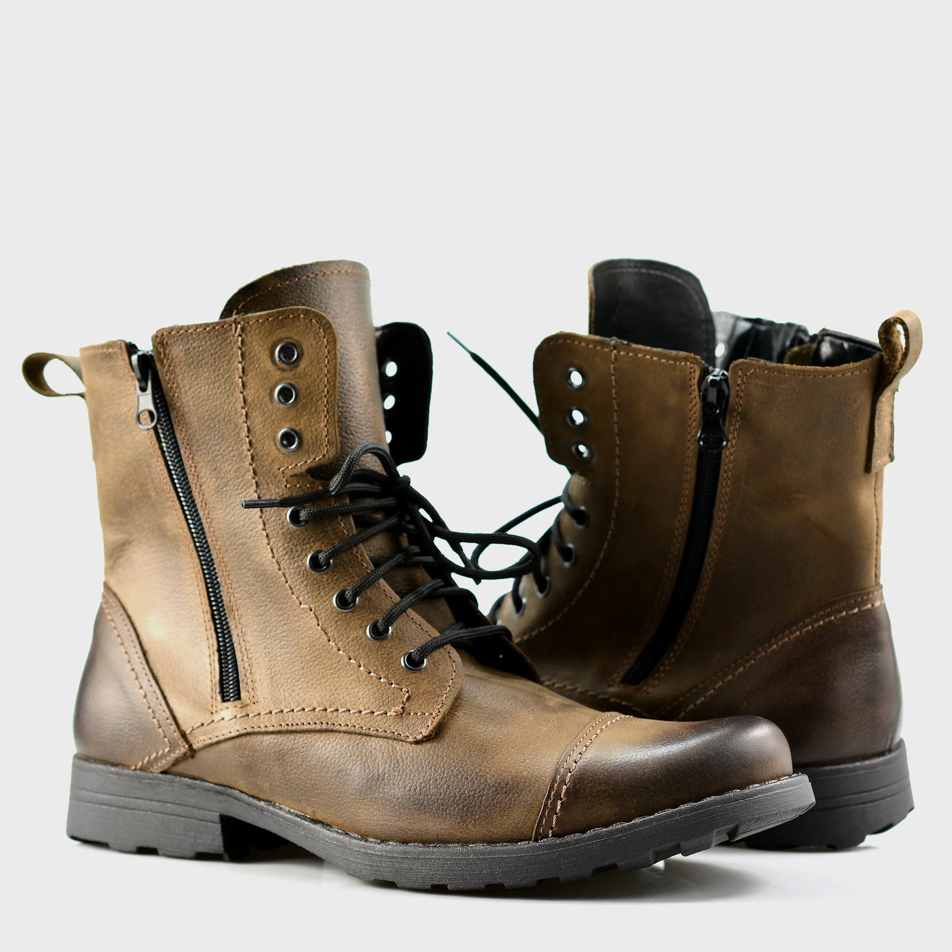 Handmade Brown Leather Men’s Military Boots – Elegant